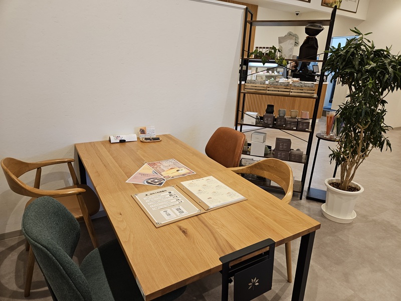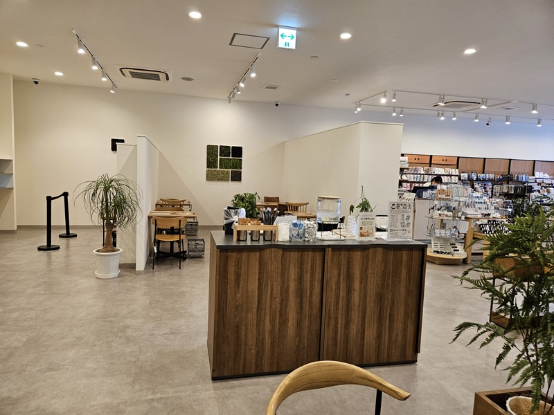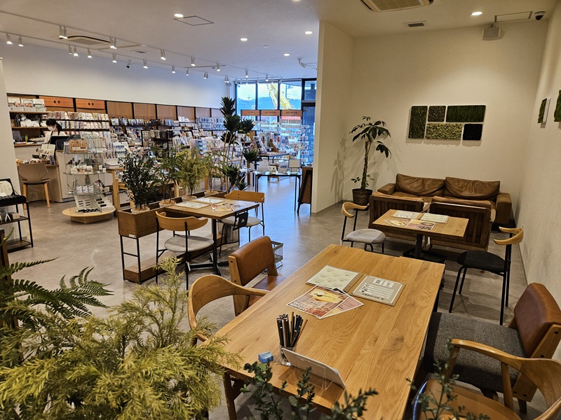 奥にカフェエリアがあります。広々としたスペースです!空いているので、真ん中あたりのテーブルに座ります。