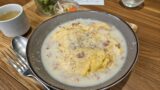女性スタッフに案内していただきカウンター奥に着席。目の前にあるランチメニュー見ると、上からパスタランチ、オムライスランチ、、、といろいろあります。が、オムライスをしばらく食べてないなあ〜と、オムライスランチにしました!