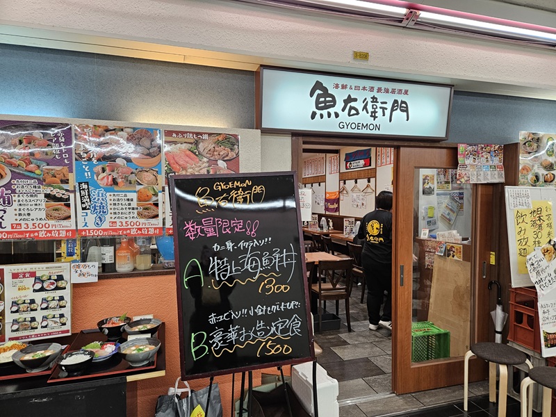 海鮮と日本酒「魚右衛門」さん。居酒屋さんだと海鮮系が美味しいんですよね☆看板メニューにも海鮮丼も書いてあり、「魚右衛門」さんでランチをとることにしました!