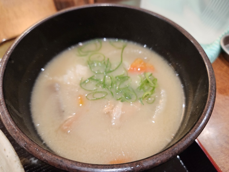 まずは、豚汁を頂きます。ズズ、熱々で美味しいです!豚汁が家庭的な味で身に沁みます。美味しいなぁ~(^^)