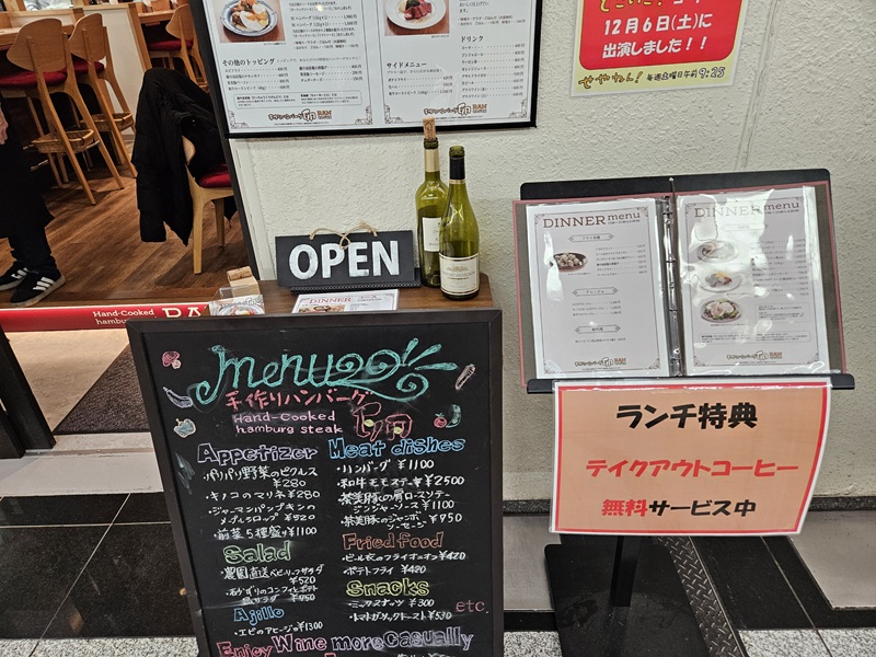 入口のメニューを確認。ハンバーグランチセットだな☆