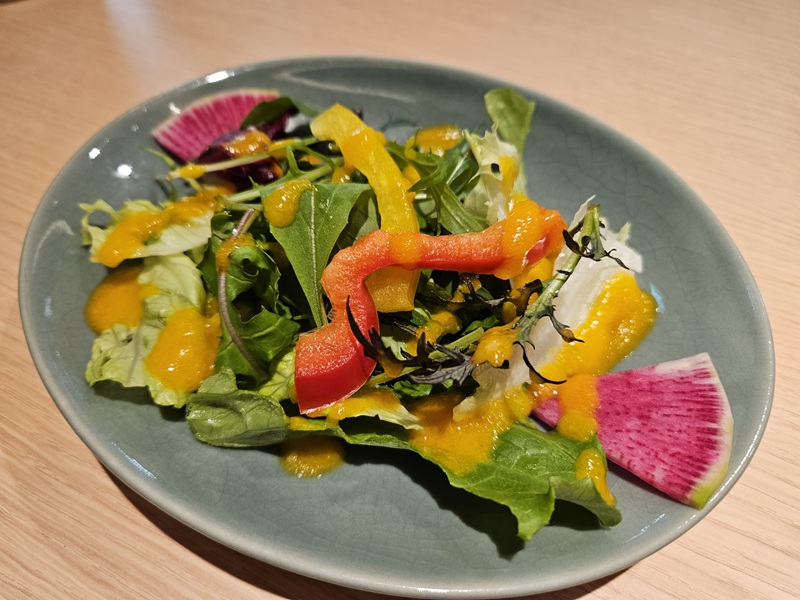 最初にサラダが来ました。すりおろしたキャロットのドレッシングですね。シャキシャキして美味しいです☆