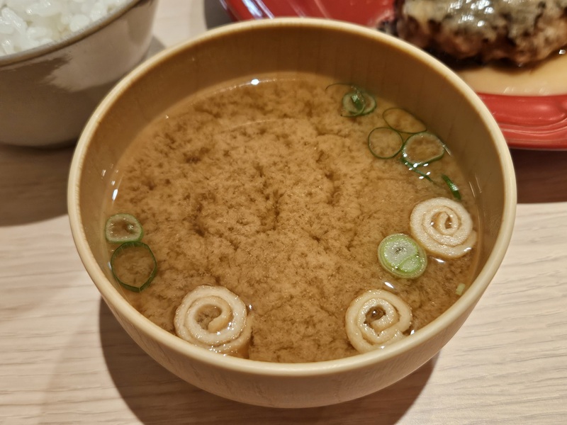 では、ハンバーグを頂きます!箸がスーッと入ります。柔らかっ!一口分をパクリ。うーん、ジューシーで肉の旨味がしっかり伝わってきます。箸というかスプーンでいけちゃう柔らかさです!