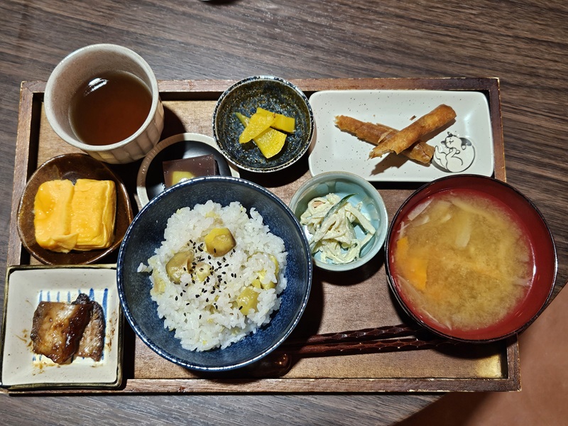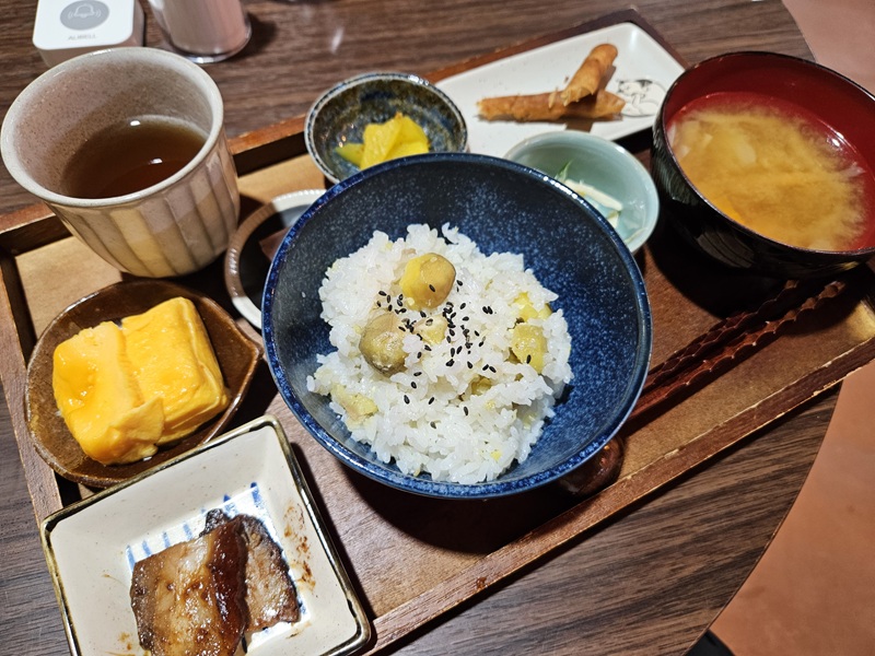予約してもらっていた円卓に案内されました。20食限定ということで予約しておいてよかったー。11時、予約通りの時間に出してもらえます!栗御膳は季節限定で人気あるので、売り切れていなくても当日注文だと待つようです。