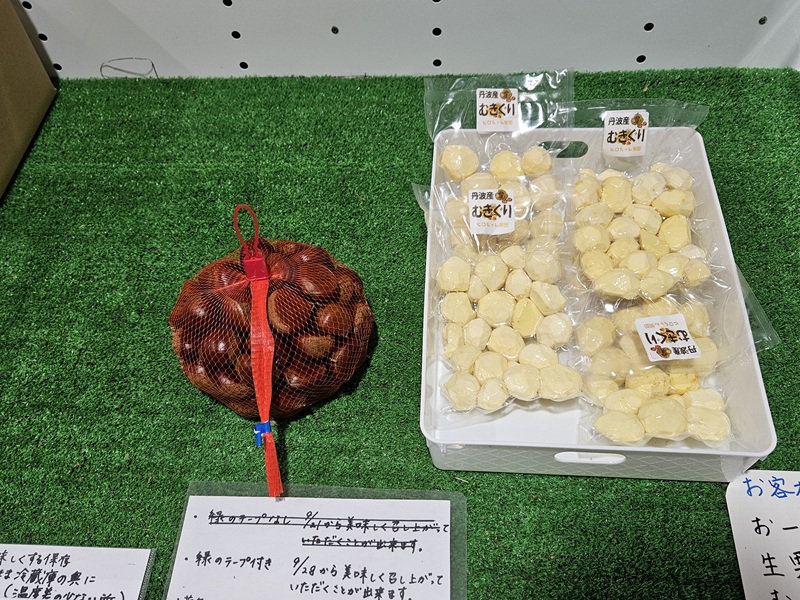 中に入ると物産エリアです。丹波栗を売っています!沢山の人が買いに来ていました(^^)。小物やアクセサリーもあります。
