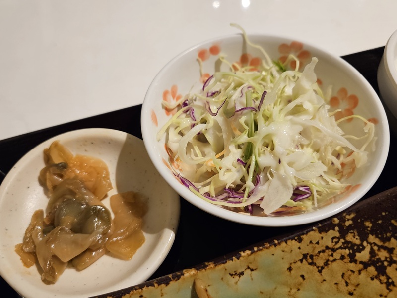 キャベツはフレンチドレッシングで。ザーサイが、いい漬かり具合でこれまた美味しいです!