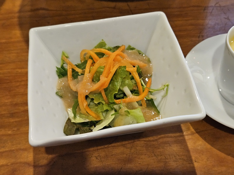 続いて、サラダ。ドレッシングに甘みがあって美味しいです!