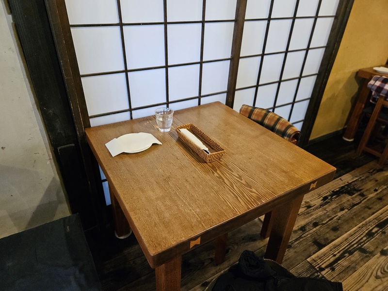 男性スタッフに二人掛けテーブルに案内されて着席。