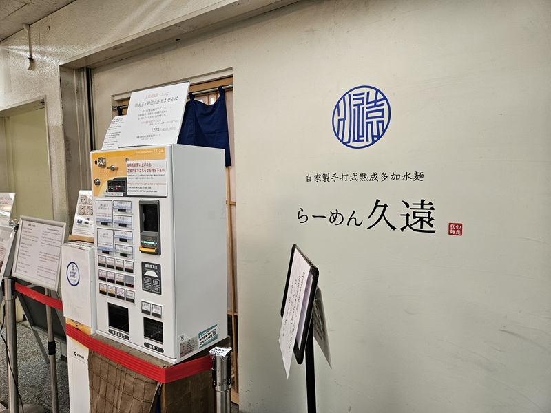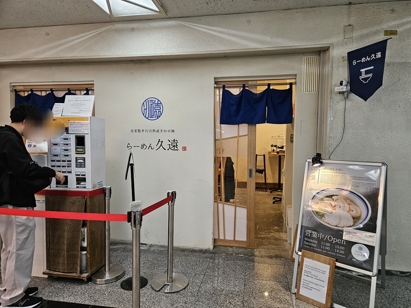 船場センタービル2号館のエスカレーターでB2に降りて3号館に向かいます。見えてきました!「らーめん久遠」さん。すでに券売機で食券を購入している方がします。ちょうど11時です☆
