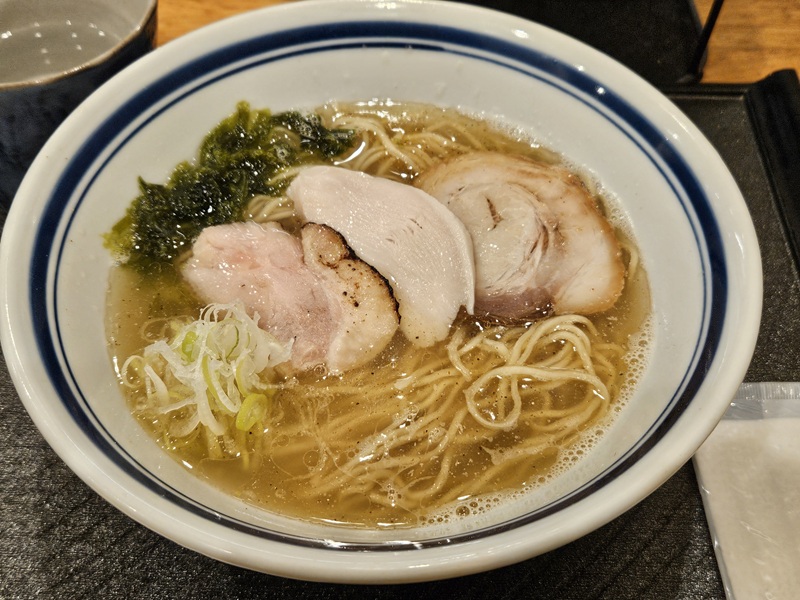話がそれました(笑)。食券を女性スタッフに渡して、しばらく待っているときました!塩ラーメン☆スープが透き通っていますね(^^)