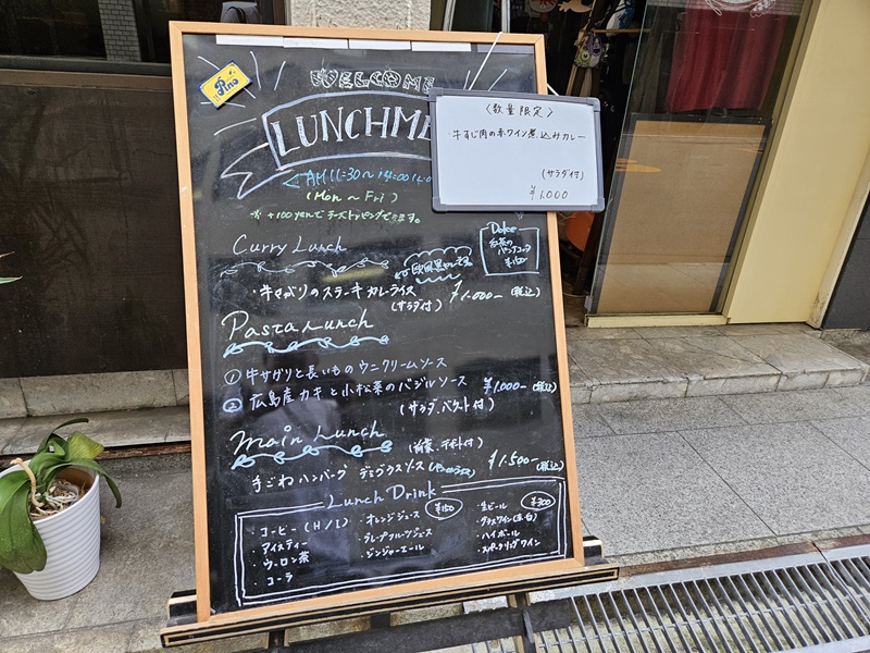 メニューを見ると、牛サガリのステーキカレーライスに目が止まります。採血したので、肉を食べよう!と、ランチは「salone Pino」さんに決定(^^)
