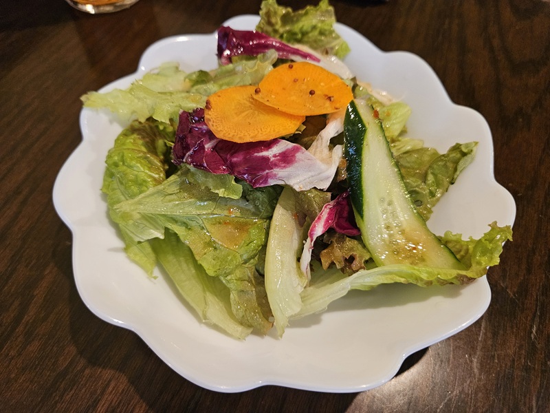 最初にセットのサラダが来ます。先に頂きます。オイルドレッシングが美味しいです☆
