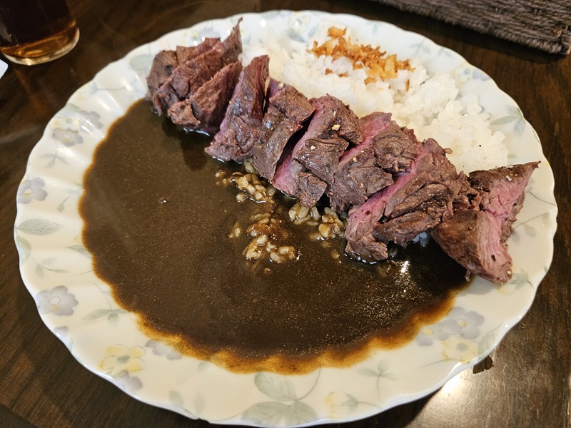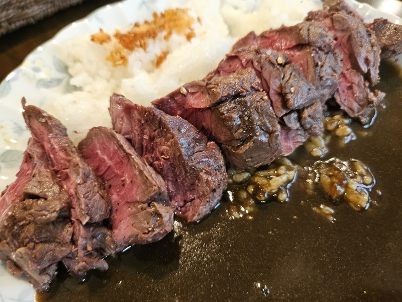 最後まで一気に完食!たっぷり牛サガリのステーキとカレーのコクのある旨味に大満足!