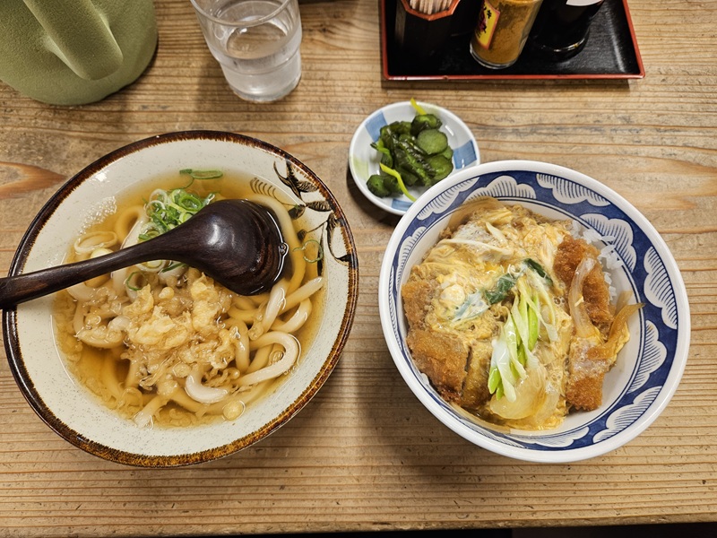 もう箸が止まらずうどんとカツ丼を交互に食べて完食!身も心も温まって大満足☆