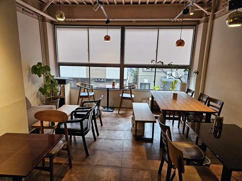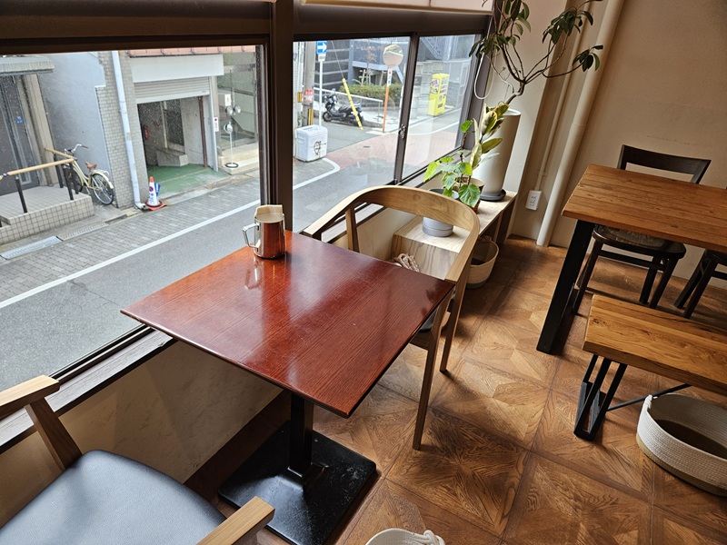 「どこでもゆったりしてください」ということで、窓際のテーブルに着きます。外を見ながらもいいですね(^^)